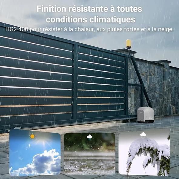Le HG2 400 est un moteur intelligent conçu pour les portails coulissants résidentiels, avec une installation simplifiée et des fonctions connectées avancées.